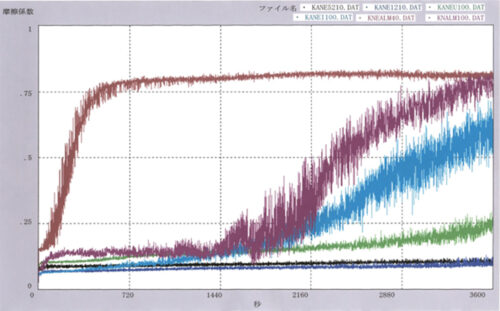 黒・紺が「TS-LUBE」です。動摩擦係数の値が0.2以下に保たれ、滑りが発揮されています。