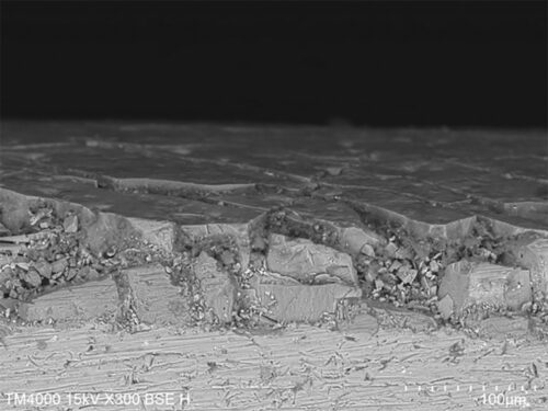 アルマイトの表面にプラスチック系個体潤滑剤として最も優れた四フッ化エチレン樹脂(PTFE)の微粒子を電気化学的手法により均一、かつ強固に形成させた皮膜で、優れた潤滑機能を有する製品を開発しました。