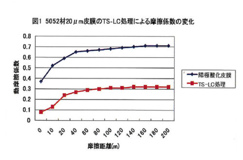 図1 A5052皮膜のTS-LC処理前後の150g荷重における200mの摩擦試験結果