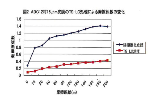 図2 ADC12皮膜のTS-LC処理前後の150g荷重における200mの摩擦試験結果